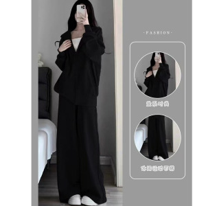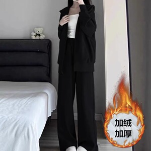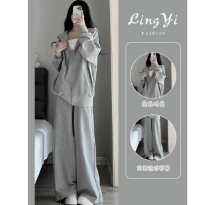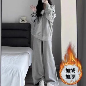 秋冬季休闲运动套装女2025新款慵懒风宽松连帽灰色卫衣阔腿两件套