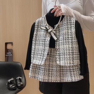 女童三件套秋新款女童小香风马甲打底衫短裙宝宝名媛套装套65166