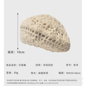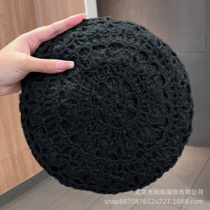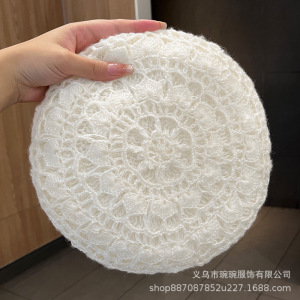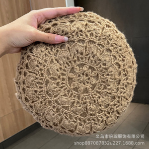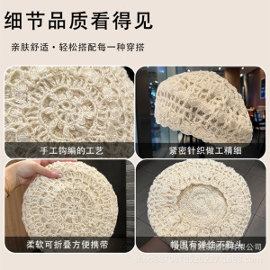 花朵镂空贝雷帽女夏季百搭薄款钩花蓓蕾画家帽日系复古显脸小帽子