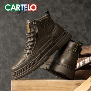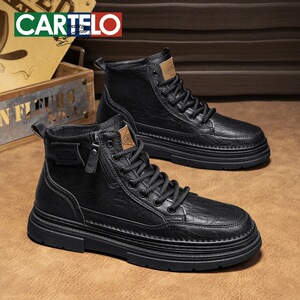 侧拉链马丁靴男款2025新款秋季厚底工装靴复古英伦风高帮休闲皮鞋