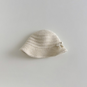 一潘 儿童帽子秋冬季新款洋气蝴蝶结针织盆帽宝宝保暖防风渔夫帽
