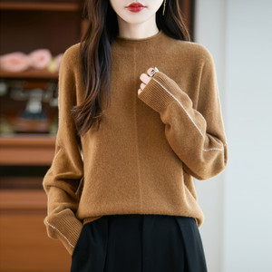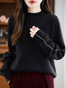 无缝一体100纯羊毛衫女半高领长袖保暖打底毛衣重工烫钻洋气上衣