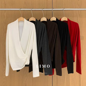 LIMO 交叉v领显瘦设计感十三行秋季新款极简气质百搭毛织上衣