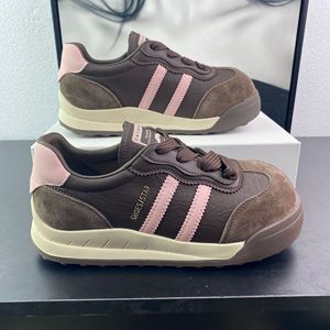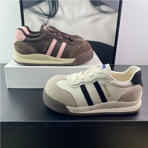 真皮卡皮巴拉丑萌圆头德训鞋女2025秋季新款轻便舒适休闲运动板鞋
