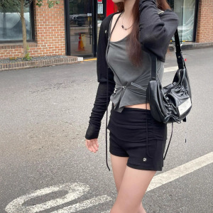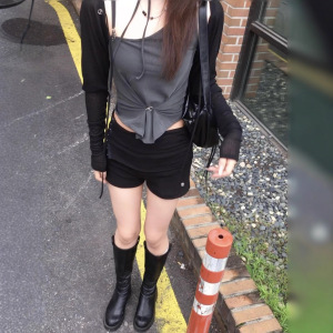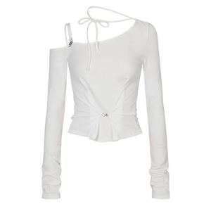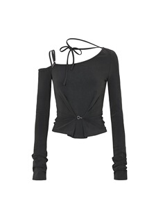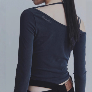 现货25新款韩国设计师品牌韩系系带露肩长袖T恤女修身上衣打底