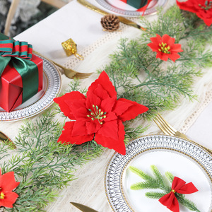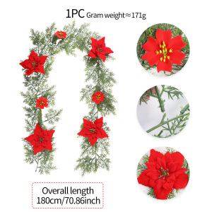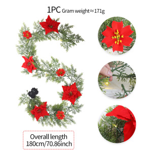 亚马逊跨境圣诞节松枝藤条四色花头红色花头带灯居家装饰布置造景