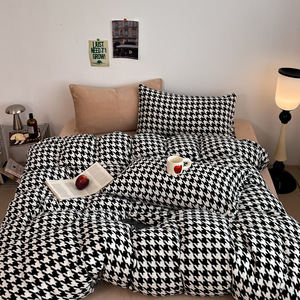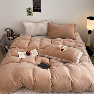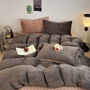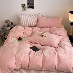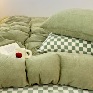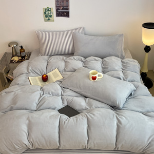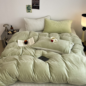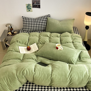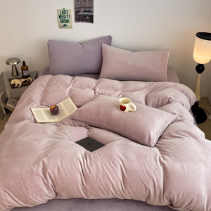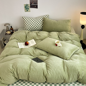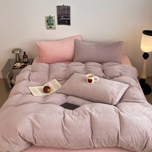 韩系奶油双拼牛奶绒四件套秋冬保暖双面绒法莱绒纯色被套床单床笠