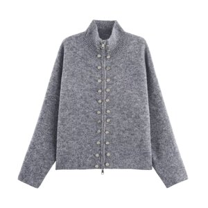 PB&ZA女装2025年秋季新款 高级感森系风多扣拉链立领针织开衫上衣
