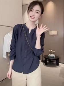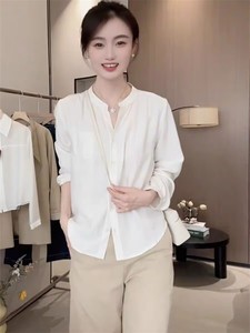 早秋V领苎麻长袖衬衫女上衣2025新款宽松显瘦防晒百搭棉麻衬衣潮