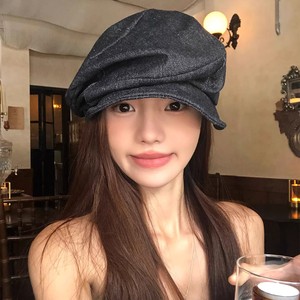 日系复古褶皱棉麻贝雷帽女夏季2025新款显脸小八角帽文艺画家帽子