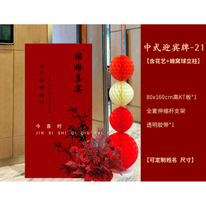 中式迎宾牌-22】含花艺+蜂窝球立柱 80x