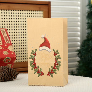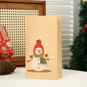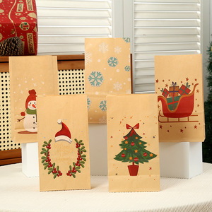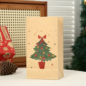 牛皮纸包装袋敞口零食袋圣诞节纸袋糖果包装袋聚会小吃方底袋批发