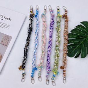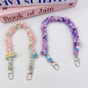 新款编织毛绒扭扭绳手机挂绳 INS高级感手工编织手腕钥匙圈挂件