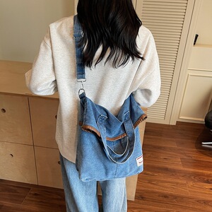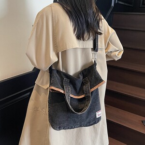 ins风2025新款牛仔帆布单肩包文艺大容量托特包休闲慵懒风斜挎包