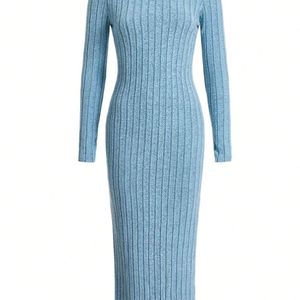 秋冬2025欧美新款针织长裙网红连衣裙开叉长袖当天发新年战袍显瘦