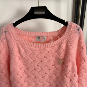 2025秋冬南油高端多巴胺可爱外贸新款镶钻logo胸针镂空长袖针织衫