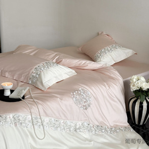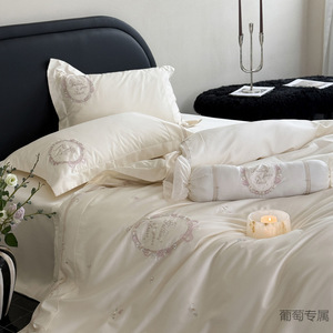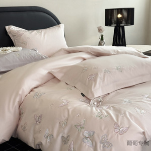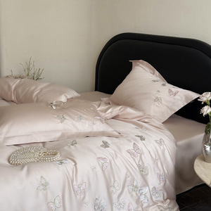 被套100S长绒棉四件套全棉纯棉蝴蝶绣花被套四季款裸睡床品床单套