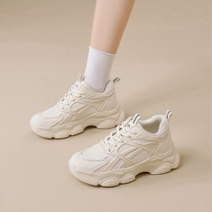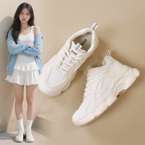 ZHR则则透气网面米色厚底老爹鞋2025秋季新款韩系显高休闲运动鞋