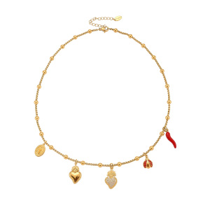 鑫艺鑫欧美轻奢时尚饰品不锈钢爱心满锆石DIY多配件吊坠锁骨项链
