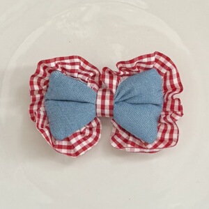 新款牛仔色红格子边充棉蝴蝶结配件diy服装鞋袜辅料装饰发夹配件