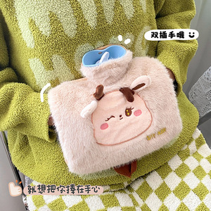 可爱卡通热水袋毛绒可爱注水暖手暖水袋可拆洗双插手暖手宝批发