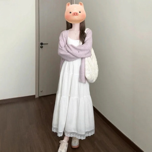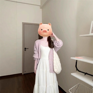 法式气质白色吊带连衣裙女秋季2025新款高级感巨好看韩系长裙套装