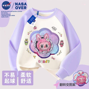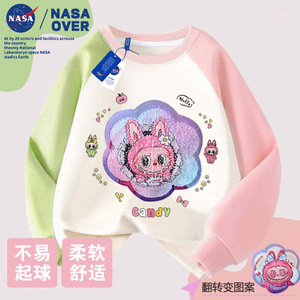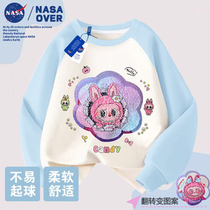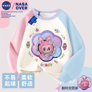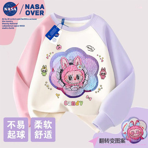 NASA女童拉布布亮片插肩长袖秋冬季新款中大童卡通时尚加绒卫衣潮