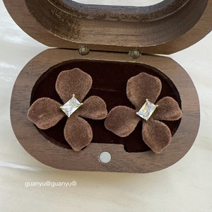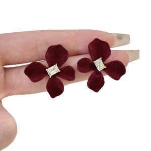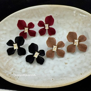 新款甜美风植绒花朵锆石耳钉女时尚轻奢小众风气质百搭秋冬季耳环