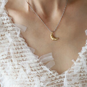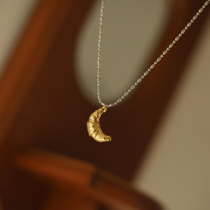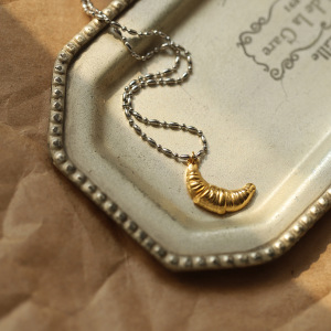 欧美ins面包金色牛角包 撞色银链锁骨链项链女简约手工项链XL663