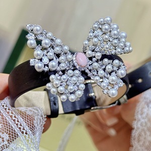 丝带蝴蝶结真皮天然淡水圆珍珠手表腕带