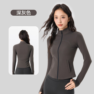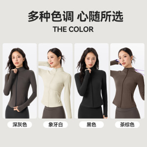 跨境加绒运动外套女锁温保暖显瘦健身服长袖秋冬立领拉链瑜伽上衣