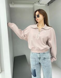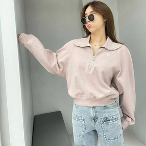 现货韩国潮牌韩国代购卫衣刘亚仁同款翻领半拉链短款时尚高腰卫衣