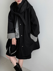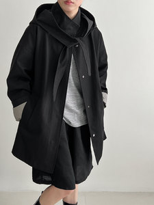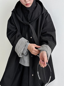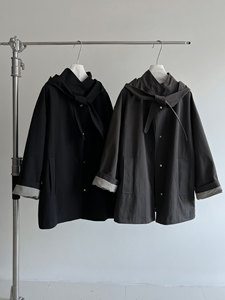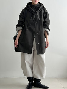 NS 韩系廓形宽松折纸兔耳领巾外套女秋季新款可拆卸连帽风衣8522