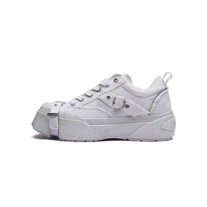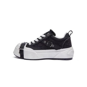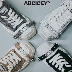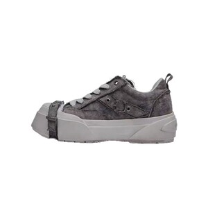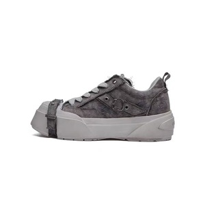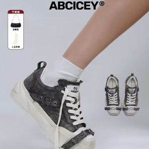 ABCICE~引力系列方头水洗灰帆布鞋 小众休闲绑带鞋时尚增高厚底鞋