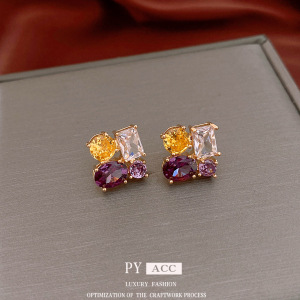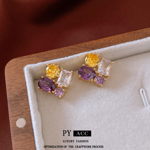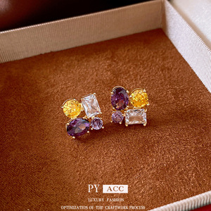 欧美重工银针锆石椭圆耳环轻奢高级感小众耳钉简约百搭耳饰批发女