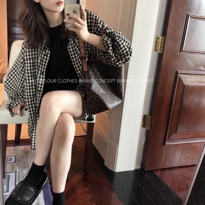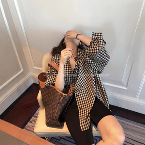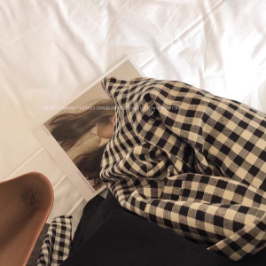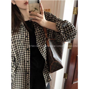 韩系氛围感穿搭黑白格子防晒衬衫女夏季oversize宽松外套长袖衬衣