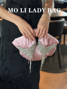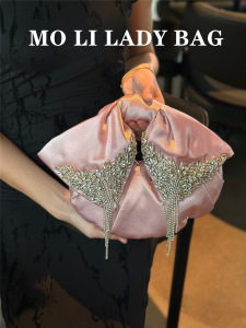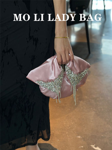 2025名媛气质蝴蝶结流苏镶钻缎面高级感星空晚宴礼服包旗袍包女