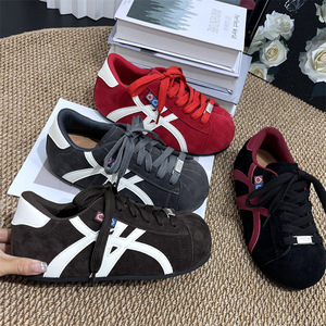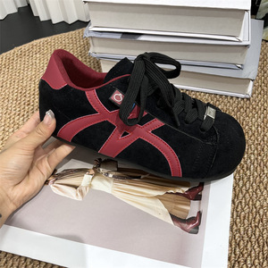复古美拉德拼色板鞋女2025年春季新款平底休闲运动鞋阿甘鞋德训鞋