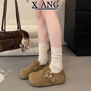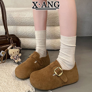 牛皮版内增高女鞋全包勃肯鞋2025秋季新款一脚蹬单鞋休闲乐福鞋子