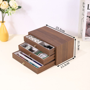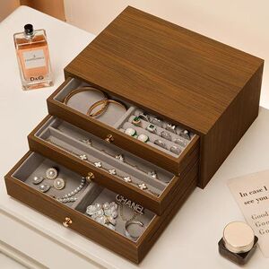 胡桃木色多层首饰收纳盒高档防尘木质耳环戒指项链饰品收纳箱子