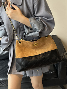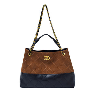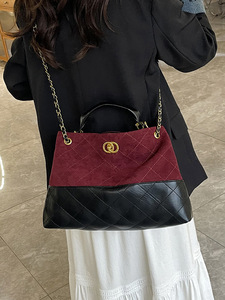 高级感大容量小香风磨砂牛皮菱格托特包2025手拎单肩斜挎水桶包包
