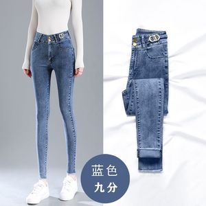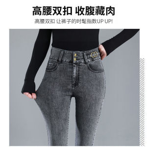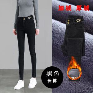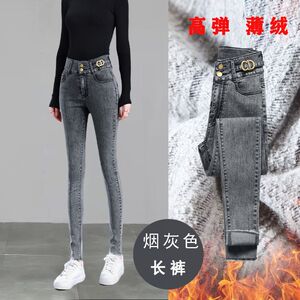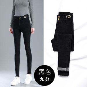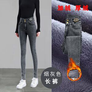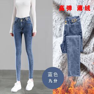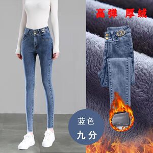 高腰加绒牛仔裤女秋冬新款小脚弹力修身显瘦薄绒厚绒铅笔长裤