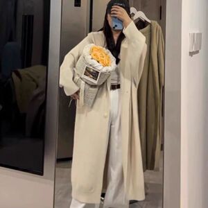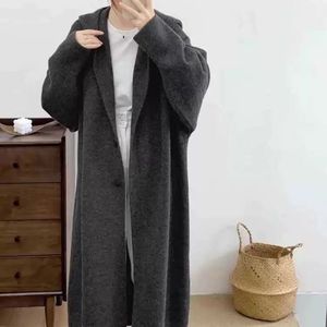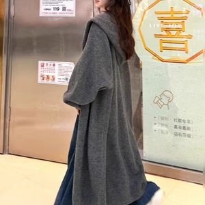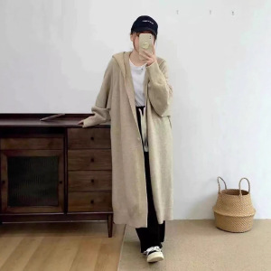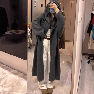 2025春季过膝开衫慵懒加厚宽松新款连帽针织长款外套毛衣大衣