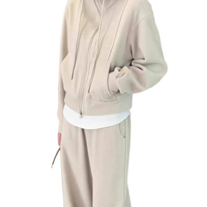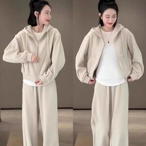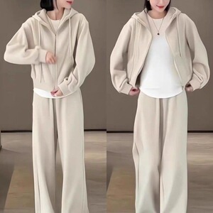 欧洲站秋季女装新款大码宽松连帽开衫套装时尚甜辣通勤穿搭一整套