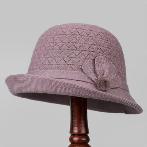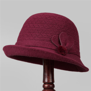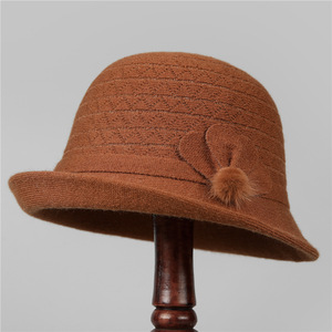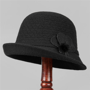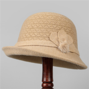 秋冬针织帽子卷边赫本风盆帽女士中老年人保暖百搭优雅妈妈渔夫帽