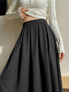 毛呢百褶裙女秋冬新款大码复古韩版半身裙高腰显瘦 a字中长款裙子