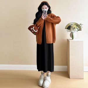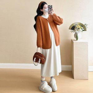 孕妇秋装套装2025新款秋冬连衣裙毛衣开衫裙子女两件套夏季慵懒风