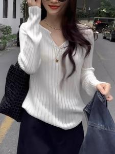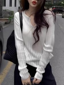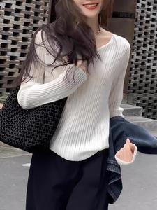 法式高级感独特漂亮白色V领上衣女2025年秋季新款针织衫设计小众