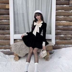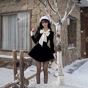 2025新款富家千金黑色连衣裙女秋冬季感小香风穿搭收腰公主裙