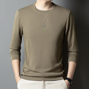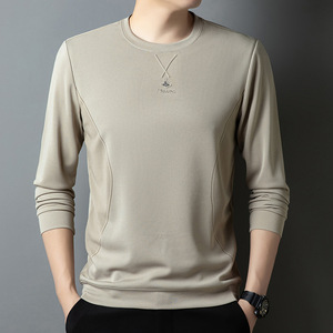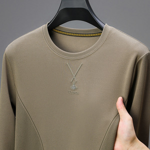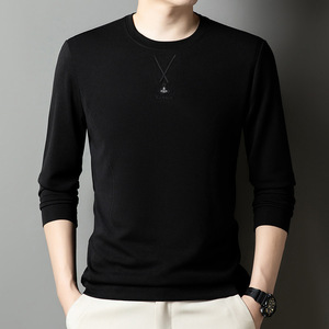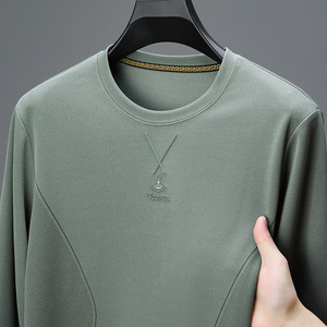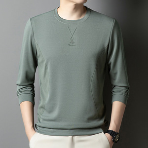 2025秋季新款男士圆领长袖卫衣提花套头休闲纯色打底衫百搭t恤男